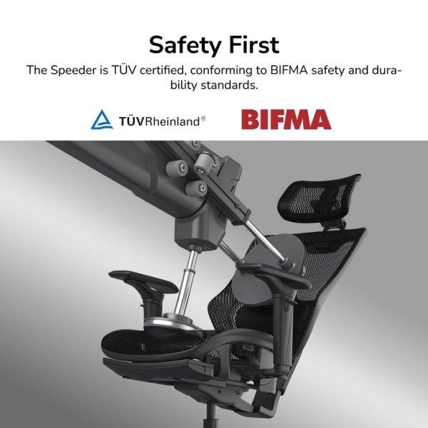 The Speeder is TÜV certified, conforming to BIFMA safety and durability standards.