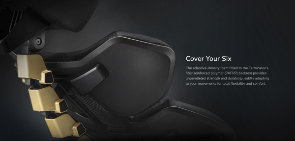 The adaptive-density foam fitted to the Terminator’s fiber reinforced polymer (PAFRP) backrest provides unparalleled strength and durability, subtly adapting to your movements for total flexibility and comfort.