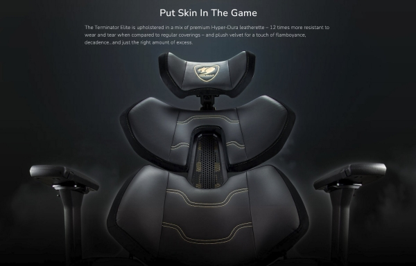 The Terminator Elite is upholstered in a mix of premium Hyper-Dura leatherette – 12 times more resistant to wear and tear when compared to regular coverings – and plush velvet for a touch of flamboyance, decadence…and just the right amount of excess.