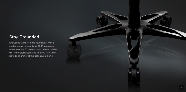 Everything starts from the foundation: with a model-exclusive extra large 29.6” aluminum wheelbase and 3” casters guaranteeing stability, the Terminator Elite makes sure you stay firmly rooted and anchored throughout your game.