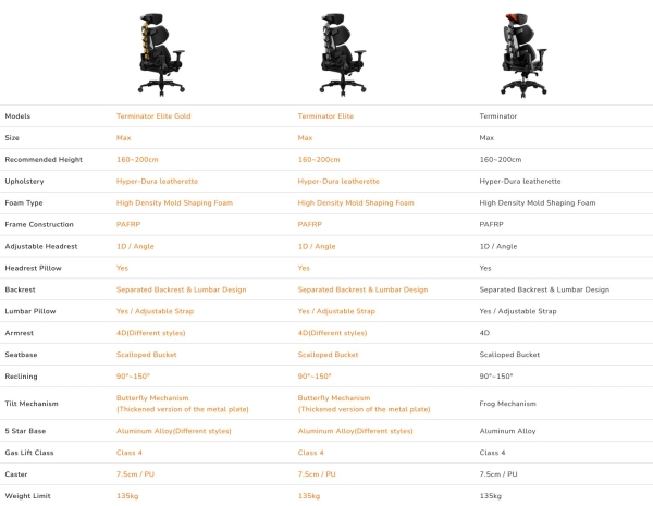 Aggressively assimilating style into functional design, the Terminator Elite is a stylish re-interpretation of the first-generation Terminator. Raising the bar for ergonomic support and comfort to unprecedented levels, it lets nothing in the way of gamers doing what they do best: play.