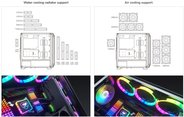 With seven fans and solid support for up to a 360mm water cooling radiator, you will enjoy superior cooling horsepower to keep advanced components safe from overheating.