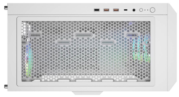 Obsahuje konektor Type-C Gen 2 (Key-A 20 Pin), 2x port USB 3.0, port USB 2.0, kombinovaný audio/mikrofonní konektor, tlačítko RGB a tlačítko napájení.