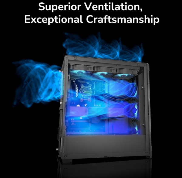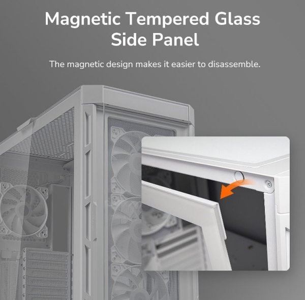 Je vybaven magnetickým 4mm bočním panelem z tvrzeného skla, který dokonale zobrazuje světelné efekty RGB a vaši sestavu. Magnetická konstrukce usnadňuje demontáž.