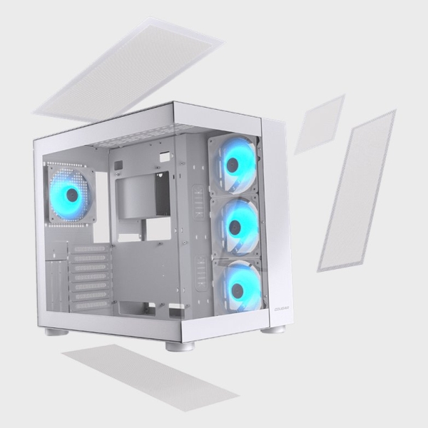 Dust covers on the three ventilated sides effectively prevent dust from entering, keeping your components clean. The top and right side filters attach magnetically, facilitating easy removal and maintenance.