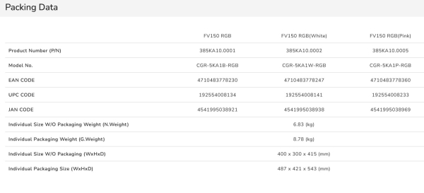 Product Name FV150 RGB / FV150 RGB (White) / FV150 RGB (Pink)