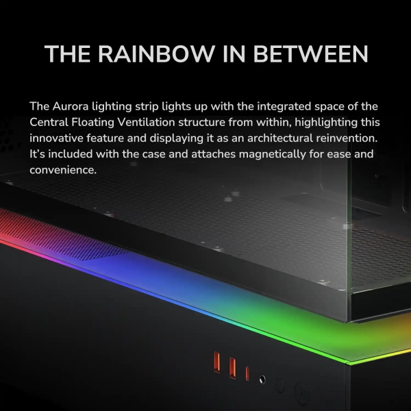 Centrální plovoucí ventilace odděluje prostor pro napájecí zdroj a hlavní komoru strukturální dutinou, která umožňuje vzduchu volnější a účelnější pohyb.