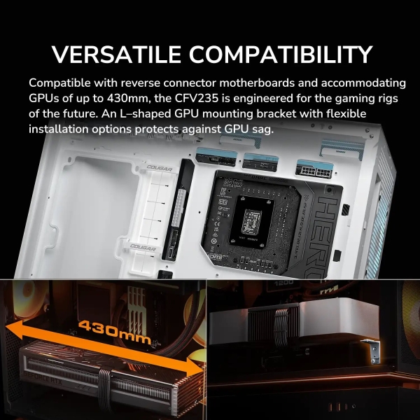 CFV235 je kompatibilní se základními deskami s reverzním konektorem a pojme GPU až do délky 430 mm.