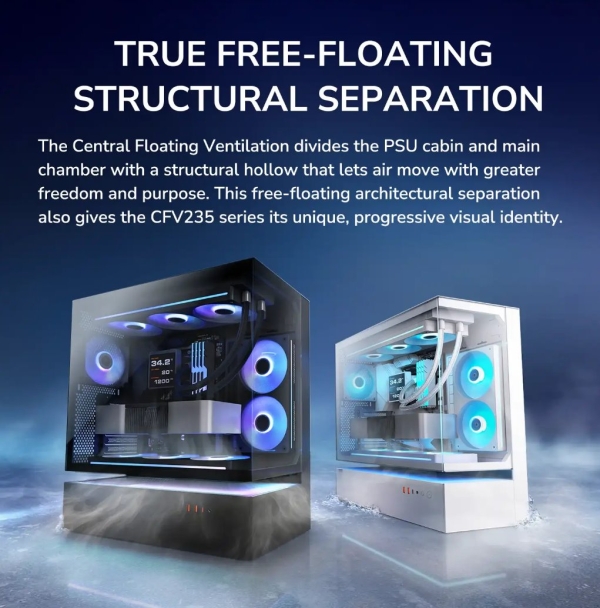 CFV235 je nový typ skříně pro PC s inovativní strukturou Central Floating Ventilation (CFV).