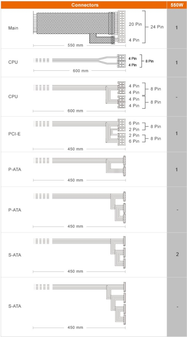 The Atlas series equips 2 CPU connectors for contemporary M/B and CPU settings. Full black and sufficient cable length allow you to install the PC with orderliness and easiness.