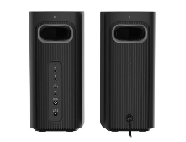 Reproduktorový systém Creative T60 především nabízí celou škálu možností připojení. Kromě zvuku USB-C pro herní konzole obsahuje integrované konektory pro připojení sluchátek a mikrofon, když se potřebujete zúčastnit online pracovního hovoru. Dále je tu praktické a snadno přístupné tlačítko pro přepínání reproduktorů a sluchátek. Nejvyšší čas posunout úroveň výchozího počítačového zvuku někam dál.