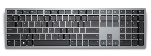 Flexibilní multi-tasking Pomocí této prémiové klávesnice můžete bezproblémově připojit až tři zařízení. Duální konektivita RF 2,4 GHz a Bluetooth 5.0 vám umožní bez námahy přepínat mezi zařízeními pomocí tlačítka režimu připojení na klávesnici. Přizpůsobte si svůj způsob Získejte okamžitý přístup k často používaným aplikacím nebo funkcím pomocí 12 programovatelných kláves na klávesnici. Pracujte naplno s klávesnicí plné velikosti, která je dodávána s vyhrazenou numerickou klávesnicí, funkčními klávesami a naprogramovanými předvolbami. Stáhněte si software Dell Peripheral Manager a snadno spárujte svá zařízení, zkontrolujte stav baterie a připojení, programujte zástupce a aktualizujte na nejnovější firmware. Dobře zpracovaný design Promyšleně navržená tichá klávesnice je tenká a stylová s prvotřídním dojmem a povrchem v titanově šedé barvě. Nastavitelné naklápěcí nohy na klávesnici vám poskytují flexibilitu při práci v ideální poloze pro psaní. Odolné a bezpečné Bezdrátová klávesnice Dell pro více zařízení je poháněna jednou z předních baterií s výdrží až 36 měsíců. Klávesnice nabízí 128bitové šifrování AES (Advanced Encryption Standard), které chrání přenos dat mezi vašimi zařízeními a poskytuje vám bezpečné připojení při psaní. Vlastnosti produktu 1. Programovatelné klávesy 2. Vyhrazené klíče 3. Vypínač 4. Indikátor stavu baterie 5. RF 2,4GHz režim 6. Režimy Bluetooth 5.0 Kompatibilita 2,4 GHz: Windows 7, 8.1, 10 a 11, Mac, Linux (Red Hat Enterprise 8.0 / Ubuntu 18.4), Chrome, a OS Android Bluetooth: Windows 8.1, 10 a 11, Mac, Linux (Red Hat Enterprise 8.0 / Ubuntu 18.4), Chrome, a OS Android Dell Peripheral Manager: Windows 10, 11 nebo novější Technické specifikace Typ zařízení: Klávesnice Jazyková mutace: US International Rozhraní: 2,4 GHz, Bluetooth 5.0 Bezdrátový přijímač: USB bezdrátový přijímač Typ: Bezdrátové Počet klávesových zkratek: 3 Funkce horkých kláves: Ztlumit, hlasitost -, hlasitost + Nastavitelná výška: Ano Vlastnosti: Numerická klávesnice Šířka: 17,1 palce (43,44 cm) Hloubka: 4,8 palce (12,19 cm) Výška: 1 palec (2,54 cm) Hmotnost: 19,79 oz (561,04 g) Barva: Titanově šedá Vyhovující standardy: AES-128 Dodávaný software: Dell Peripheral Manager (pouze Windows) Požadovaný OS: Apple MacOS, Android, Google Chrome OS, Microsoft Windows 7 / 8.1 / 10, Red Hat Enterprise Linux 8.0, Ubuntu 18.04, Windows 11 Baterie: typ AAA Instalované množství: 2 Obsah balení Bezdrátová klávesnice Dell pro více zařízení – KB700 USB přijímač Baterie (2x AAA) Uživatelská příručka