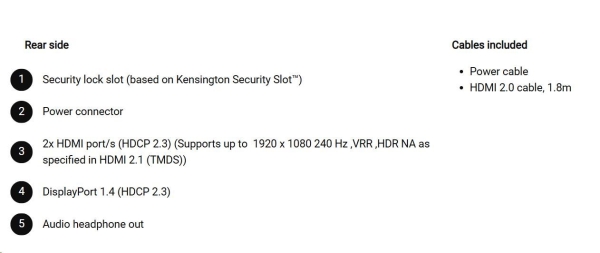 DELL LCD SE2426HG - 24"/FHD/IPS/1920x1080/16:9/240Hz/5ms/1000:1/300 cd/m2/HDMI/DP/VESA//3YNBD (210-BTTF)