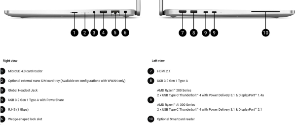 | 3-cell, 55 Wh, ExpressCharge™ Capable, ExpressCharge™ Boost Capable, 65W AC adapter, USB Type-C |