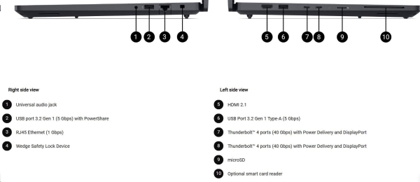 • Thunderbolt™ 4 ports (40 Gbps) with Power Delivery and DisplayPort