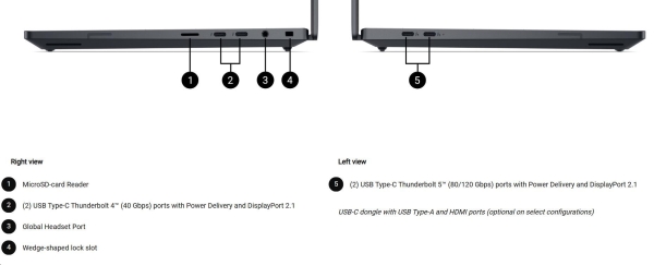 2x Thunderbolt 4 (40 Gb/s) s funkciou Power Delivery a rozhraním DisplayPort 2.1