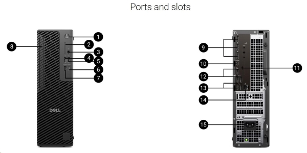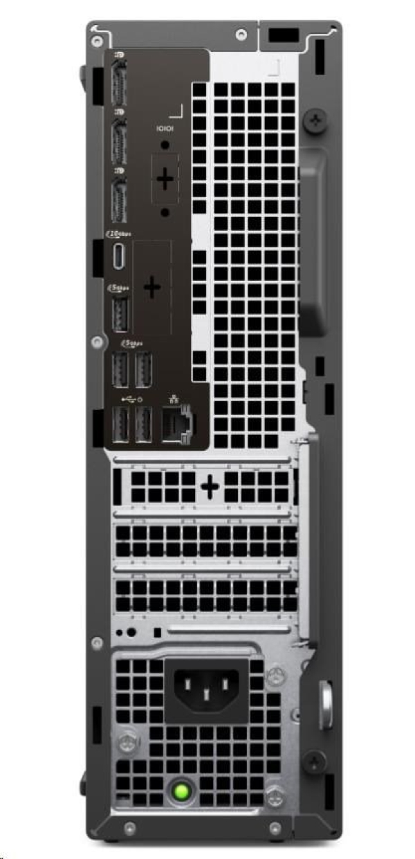 Dell Pro Max Slim FCS1250 nabízí bohatou výbavu včetně portů USB-A a USB-C, HDMI, DisplayPort a RJ-45 Ethernetu pro stabilní síťové připojení. Součástí balení je klávesnice Dell KB216 a optická myš Dell MS116 pro okamžité použití. Desktop je vybaven také technologiemi vPro pro snadnou správu a zabezpečení v podnikových sítích.