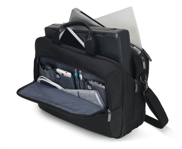 • Spacious main compartment with storage area for documents and padded slip pocket for tablets up to 10.5" (soft Nylex material)