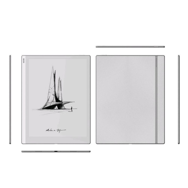 ONYX BOOX Go 10.3 je velkoformátová 10,3” E čtečka, která vám umožňuje pořizovat ručně psané poznámky perem dodávaným se zařízením. Model je vybaven obrazovkou E Ink Carta Plus (Carta 1200) s vysokým rozlišením a dvěma senzorovými vrstvami: kapacitní vrstvou pro dotyk prstů a indukční vrstvou pro práci s perem. Zařízení je založeno na vysoce výkonné hardwarové platformě a lehkém tenkém těle (4,5 mm). ONYX BOOX Go 10.3 běží na 8jádrovém procesoru a 4 GB RAM a 64 GB energeticky nezávislého úložiště bude stačit pro uložení velkého množství e-knih a dokumentů. Vestavěný dvoupásmový Wi-Fi modul umožňuje přístup k internetu a využívání síťových služeb a podpora Bluetooth 5.0 umožňuje připojení externích zařízení a příslušenství. S pomocí předinstalovaného audio přehrávače můžete poslouchat hudbu a audioknihy. Podporována je také funkce Text-To-Speech. Model běží na operačním systému Android 12 a umožňuje instalovat a používat aplikace třetích stran. Zařízení má obchod s aplikacemi Google Play pro stahování a instalaci různých aplikací třetích stran. Displej je pokryt speciálním sklem ONYX Glass, které ho chrání před poškozením. Díky velkému displeji a možnosti dělat si ručně psané poznámky bude model výbornou volbou pro ty, kteří plánují pracovat s dokumenty a hodně psát. ONYX BOOX Go 10.3 nemá systém předních světel a byl navržen pro práci ve vnějším osvětlení.