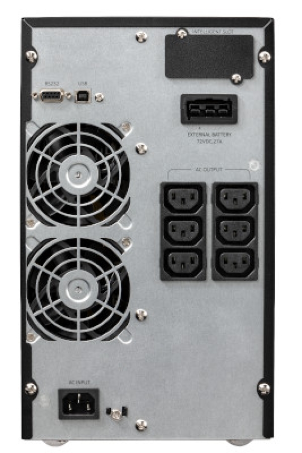 | Zvláštní charakteristiky | Topologie dvojité konverze Neustále monitoruje kvalitu vstupního napájení a reguluje napětí a frekvenci na výstupu Interní bypass zajišťuje kontinuitu provozu v případě poruchy UPS LCD displej ukazující stav a měřené hodnoty v reálném čase Kompatibilní s virtuálním prostředím (VMware, Hyper-V, Citrix Xen, Redhat) Dlouhá doba zálohy s až 4 volitelnými EBM |