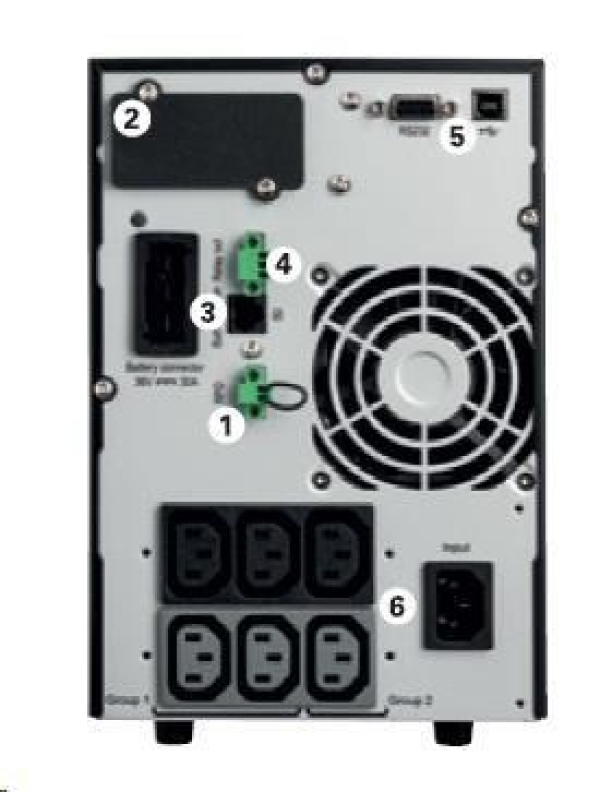 | Komunikace | USB port (kompatibilní s HID) Sériový port (RS232) Mini-svorkovnice pro vzdálené vypnutí napájení (RPO) Mini svorkovnice pro výstupní relé Bezpotenciálové kontakty (2 výstupy, 1 vstup, optočlen, DB9) |