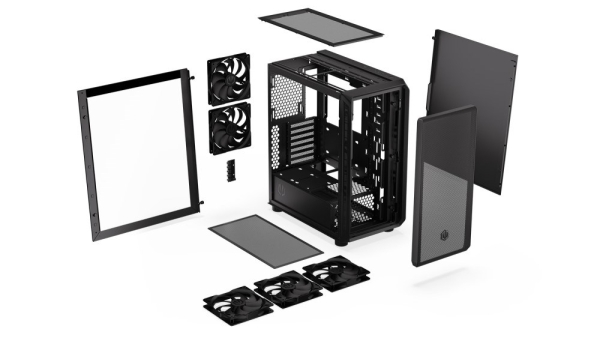 Toto je jeden z největších (o něco kratších než série ENDORFY Arx 700), jaké jsme kdy vytvořili. Měří 486×228×429 mm – dost na to, aby se tam vešel vysoký chladicí systém (až 179 mm), 7 ventilátorů (včetně 5 Stratus 140 PWM, které vám dáme pro dobrý začátek) a většina grafických karet dostupných na trhu ( do 350 mm). Vše sedí v příjemném vánku, jemně perforované přední a horní panely propouštějí čerstvý vzduch a blokují prach. Můžete to zkontrolovat přes okno z tvrzeného skla.