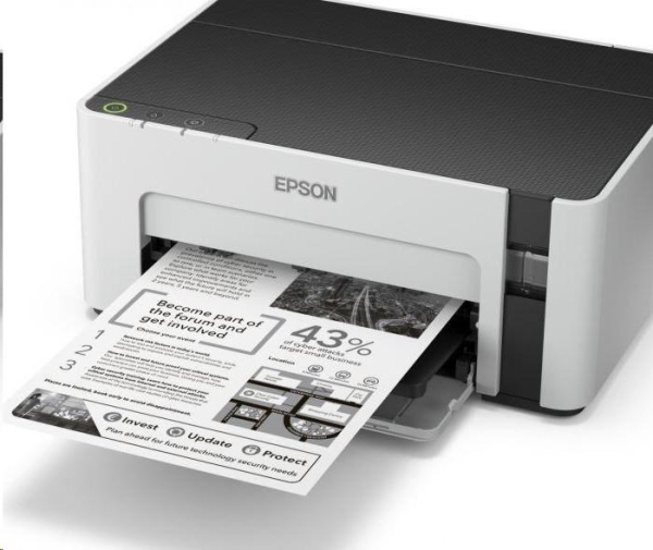 Nízká pořizovací cena a snížení nákladů až o 90 %, tiskárnu Epson EcoTank M1120 budete milovat! Tiskne s tankovým systémem, díky tomu máte fakturu za méně než korunu s rychlostí až 32 stran za minutu. Součástí tiskárny je lahvička originálního inkoustu zdarma a 3× objemný zásobník na papír, který je v ceně tiskárny.