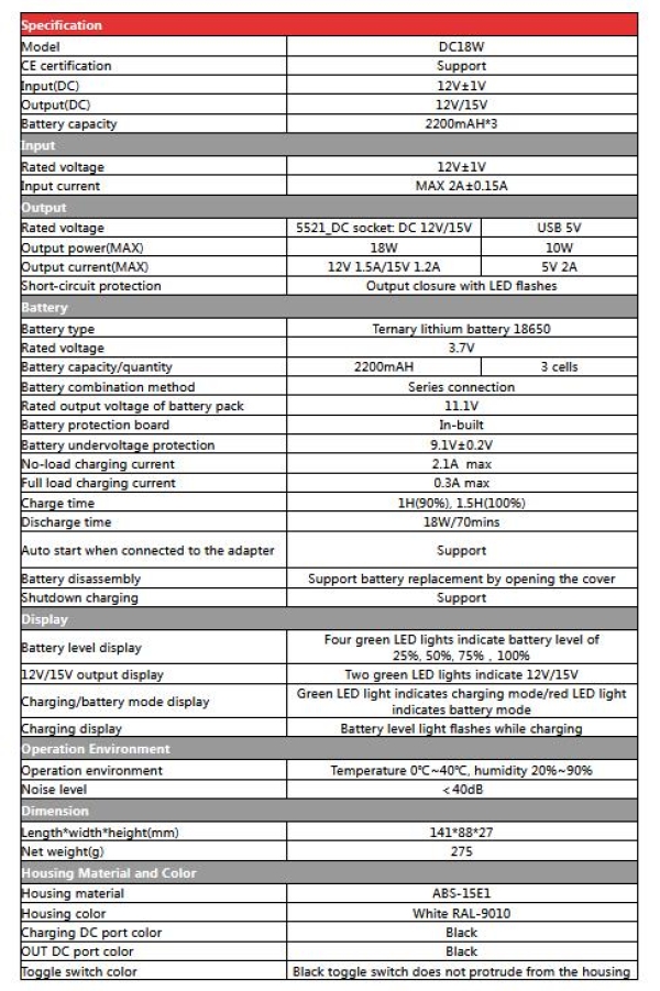 - použítí: např. pro zálohování routerů, modemů, kamerových systémů a podobných zařízení napájených DC 12V/15V