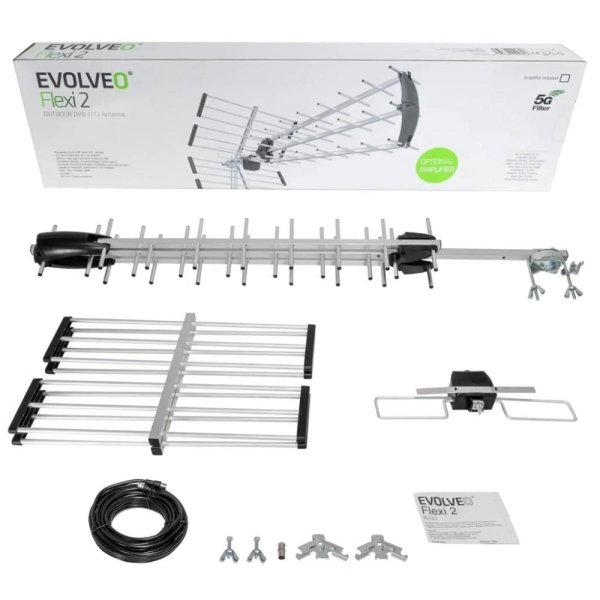 EVOLVEO Flexi 2, filtr 5G, kabel 10m, redukce IEC/F, pasivní venkovní DVB-T/T2 anténa rozšířitelná o zesilovač