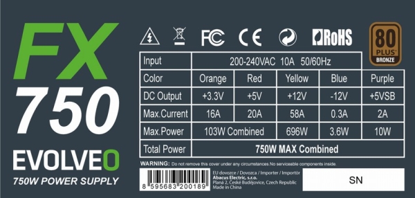 EVOLVEO FX 750/750W/ATX/80PLUS Bronze/Bulk