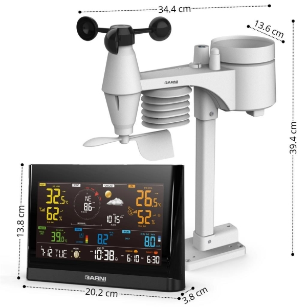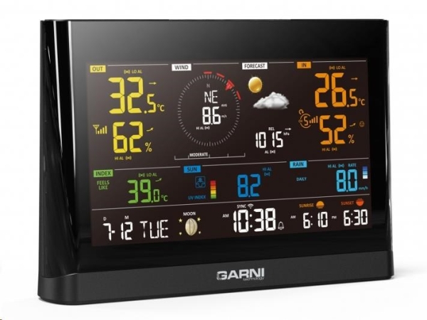 Wi-Fi meteorologická stanice model GARNI 1025 Arcus 2GEN s integrovaným bezdrátovým čidlem 7-v-1, která je vybavena mnoha funkcemi shromažďuje přesné a podrobné údaje o počasí. Integrované bezdrátové čidlo pracuje na frekvenci 868 MHz a měří vnější teplotu a relativní vlhkost, rychlost a směr větru, dešťové srážky, barometrický tlak, UV index a intenzitu slunečního záření. Výrobek používá vysoce přesná švýcarská čidla SENSIRION a umožňuje kalibraci některých meteorologických veličin.