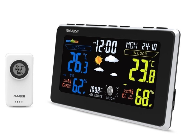 Třetí generace meteorologické stanice se špičkovým inverzním barevným VA displejem s časem řízeným rádiovým signálem DCF-77, budíkem, měřením vnitřní teploty, relativní vlhkosti a absolutního barometrického tlaku, bezdrátovým čidlem pro měření vnější teploty a relativní vlhkosti a USB portem pro napájení externích zařízení