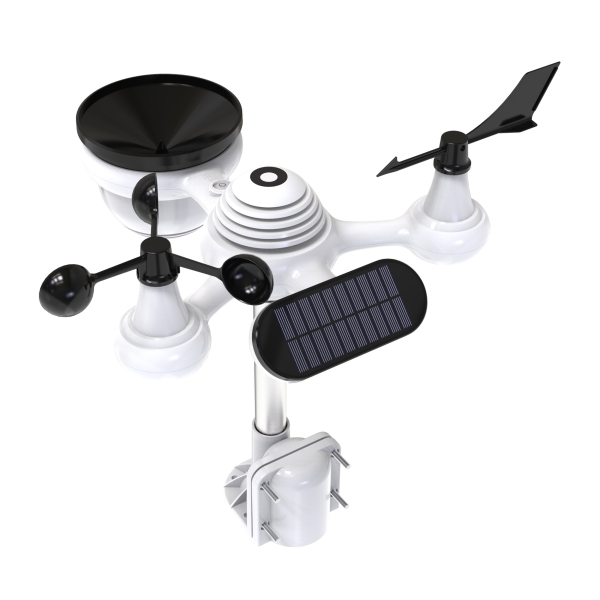 - barva bílá, úchyt montážní tyče, solární panel, nálevka srážkoměru, korouhvička a větrník černá