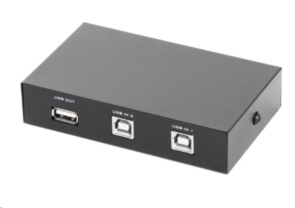 - Konektory: 2x USB-B(samice) v.2.0 pro 2 počítače, USB-A(samice) pro zařízení nebo USB rozbočovač
