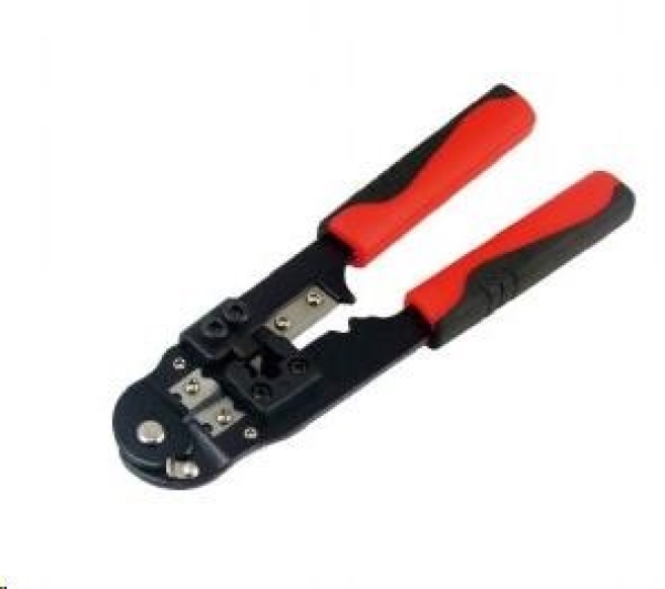 multifunkčný sieťový nástroj 3 v 1. Môže sa používať na strihanie, odizolovanie vodičov a lisovanie zástrčiek. Vhodné pre konektory RJ45/8P8C. Praktická funkcia uzamknutia..