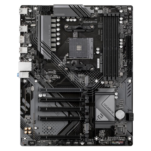 GIGABYTE B550 EAGLE Chipset: AMD B550 Rozměrový formát: ATX (305x244mm) Podpora pro procesory: AMD Ryzen™ 5000 G-Series/5000 Series/AMD Ryzen™ 4000 G-Series/AMD Ryzen™ 3000 G-Series/3000 Series Patice procesoru: AM4 Paměť: * 4x DIMM patice podporující až 128GB, DDR4 3200/2933/2667/2400/2133 MT/s * dvoukanálová architektura paměti * podpora paměťových modulů ECC bez vyrovnávací paměti DIMM 1Rx8/2Rx8 * podpora paměťových modulů DIMM bez vyrovnávací paměti bez ECC 1Rx8/2Rx8/1Rx16 * podpora paměťových modulů Extreme Memory Profile (XMP) Grafické výstupy: grafické specifikace se mohou lišit v závislosti na podpoře CPU * 1x HDMI® 2.1 Zvuková karta: kodek Realtek® (7.1 Surround Sound High Definition Audio CODEC) Ethernet: Realtek® GbE LAN WLAN + Bluetooth: ne Rozšiřující sloty: * 1x PCI Express x16 (PCIEX16) * 4x PCI Express x16, podpora PCIe 3.0 běží na x1 (PCIEX1_1, PCIEX1_2, PCIEX1_3, PCIEX1_4) RAID řadič: podpora RAID 0/1/10 pro SATA a NVMe SSD Úložný prostor: celkem podporuje 2 sloty M.2 a 4 porty SATA 6Gb/s * 1x M.2 (M2A_CPU), M key, typ 2280/22110 SSD (podpora SATA a PCIe 3.0 x4/x2, PCIe 4.0x4/x2) * 1x M.2 (M2B_SB), M key, typ 2280/22110 SSD (podpora PCIe 3.0 x2) * 4x port SATA 6Gb/s USB: Zadní USB (celkem 8 portů) * 1x USB 3.2 Gen 2 typ A/USB 3.2 Gen 1 (červený) * 1x USB typ C® s podporou USB 3.2 Gen 1 * 2x USB 3.2 Gen 1 * 4x USB 2.0/1.1 Přední USB (celkem 7 portů) * 1x USB typ C® header, s podporou USB 3.2 Gen 1 * 1x USB 3.2 Gen 1 header - podpora dalších 2 portů USB 3.2 Gen 1 * 2x USB 2.0 header - podpora dalších 4 portů USB 2.0 Porty na zadním panelu: * 4x USB 2.0/1.1 * 1x HDMI * 1x USB 3.2 Gen 2 typ A/USB 3.2 Gen 1 (červený) * 1x USB typ C® s podporou USB 3.2 Gen 1 * 1x tlačítko Q-Flash Plus * 1x RJ-45 * 2x USB 3.2 Gen 1 * 3x audio konektor Interní porty: Napájení * 1x 24-pin ATX hlavní napájecí konektor * 1x 8-pin ATX 12V napájecí konektor Související s ventilátorem a chlazením * 1x CPU fan header * 1x CPU fan/water cooling pump header * 3x system fan header Související s úložištěm * 2x M.2 slot (Key M) * 4x SATA 6Gb/s port USB * 1x USB typ C® header, s pdoporou USB 3.2 Gen 1 * 1x USB 3.2 Gen 1 header * 2x USB 2.0/1.1 header Ostatní * 2x adresovatelný LED strip header * 2x RGB LED strip header * 1x CPU cooler LED strip/RGB LED strip header * 1x front panel header * 1x front panel audio header * 1x Trusted Platform Module (TPM) header (2x 6pin, pouze pro modul GC-TPM2.0_S) * 1x Clear CMOS jumper BIOS: 1x 128Mb flash, AMI UEFI BIOS, PnP 1.0a, DMI 2.7, WfM 2.0, SM BIOS 2.7, ACPI 5.0 Odkaz na stránku výrobce: https://www.gigabyte.com/Motherboard/B550-EAGLE#kf