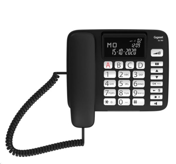 Komfortní kombinovaný telefon s maximální svobodou pohybu a přístupností v domácnosti Dva perfektně koordinované přístroje fungují jako kombinovaná sada a zaručují maximální svobodu pohybu připojením šňůrového telefonu na stálém místě s flexibilním sluchátkem Výhody kombinovaného telefonu: - centrální telefonní seznam až na 99 jmen a čísel - synchronizovaný seznam pro příchozí a odchozí hovory - synchronizovaný seznam až 32 zakázaných čísel Klávesa „sound boost“ pro extra hlasité a jasné nastavení hlasitosti Obzvláště velké displeje s vysokým kontrastem a ovládací panely pro snadné ovládání Velké programovatelné klávesy přímé volby pro rychlou komunikaci (A D na DL780, A B na DL780H) * Plug & play – velmi snadná instalace: vybalte, zapojte a volejte (sluchátko je již přihlášeno k základně) Displej - úhlopříčka [palce]: Velký podsvícený černobílý displej s vysokým kontrastem, 34 x 37 mm (Š x V), úhlopříčka 5,1 cm (2“) Displej - rozlišení [pix]: 96 x 64 pixelů Stolní telefon (DL780) * Napájení: 230 V plug-in napájecí adaptér * Rozměry: 78 x 200 x 195 mm (V x Š x H) včetně sluchátka * Hmotnost: zhruba 590 g Sluchátko (DL780H) * Pohotovostní doba: až 200 hodin * Doba hovorů: až 10 hodin * Baterie: 2x AAA (NiMH), dobíjecí * Doba nabití: zhruba 5 hodin * Dosah: - v budovách: až 50 m/venku: až 300 m * Rozměry: 173 x 52 x 28 mm (V x Š x H) * Hmotnost: cca 122 g (včetně baterií) Nabíječka * Napájení: 230 V plug-in napájecí adaptér * Rozměry: 48 x 88 x 90 mm (V x Š x H) * Hmotnost: cca 55 g Rozsah dodávky * 1 stolní telefon Gigaset DL780 * 1 sluchátko Gigaset DL780H * 1 nabíječka Gigaset DL780H * 2 plug-in napájecí adaptéry * 1 telefonní kabel * 2 AAA dobíjecí baterie (NiMH) * 1 kryt prostoru pro baterii * 1 provozní pokyny