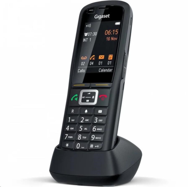 Všestraný telefon, se kterým můžete bez obav pracovat po celý den. Na odolný Gigaset R700H PRO se můžete spolehnout za všech okolností: jeho mimořádně dlouhou pohotovostní dobu a povrch, který nepoškodí ani dezinfekční prostředky, si rychle oblíbíte. *Kompaktní velikost *Odolné provedení *Dlouhá doba hovoru *S mnoha funkcemi Univerzální řešení pro každého Gigaset R700H PRO se může pochlubit velkým osvětleným 2,4'' barevným TFT displejem. Telefon splňuje všechny požadavky na profesionální DECT jednotku. Četné funkce včetně Bluetooth 4.2, vibračního režimu a vynikající kvality zvuku (HDSP), dělají z tohoto přístroje dokonalého partnera v každodenním pracovním prostředí. Odolný do náročných pracovních podmínek Telefon Gigaset R700H PRO se dokonale přizpůsobí každodennímu pracovnímu životu. Bez ohledu na to, kde se používá, ať už v dešti, nebo v prašných provozech, se na něj můžete spolehnout. Díky pogumovanému povrchu je také velmi praktický. Dokonce ani použití v pracovních rukavicích není problémem. Vaši bezpečnost navíc zajišťuje tlačítko alarmu. *Univerzální DECT telefon s HD zvukem *Umožňuje analogové (1), paralelní IP (2) a ISDN (2) hovory *Adresář pro 500 záznamů *Podporuje synchonizaci přes QuickSync (Outlook, Google-Contacs) *Standardy DECT, GAP, CAT iq 2.0 *Možnost připojení handsfree přes Bluetooth, microUSB a 3.5mm jack *Standby až 320 hodin, doba hovoru až 13 hodin *Obsahuje podsvícený 2.4'' displej (240 x 320 bodů), podsvícená klávesnice *Napájení: 2 NiMh AAA baterie