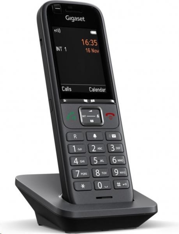 Univerzální DECT telefon s HD zvukem Všestranný telefon, se kterým můžete bez obav pracovat po celý den. Na odolný Gigaset S700H PRO se můžete spolehnout za všech okolností: jeho mimořádně dlouhou pohotovostní dobu a povrch, který nepoškodí ani dezinfekční prostředky, si rychle oblíbíte. Profesionální mobilní zařízení DECT od společnosti Gigaset se navíc může pochlubit mnoha funkcemi, včetně zvukových profilů a vynikající kvality HD zvuku. Nabízí intuitivní na ovládání a rychlý přístup k adresářům a kontaktům. *Kompaktní velikost *Variabilní funkce *Dlouhá doba hovoru *Umožňuje analogové (1), paralelní IP (2) a ISDN (2) hovory *Adresář pro 500 záznamů *Podporuje synchronizaci přes QuickSync (Outlook, Google-Contacs) *Standardy DECT / ECO DECT, GAP, CAT iq 2.0 *Možnost připojení handsfree přes Bluetooth, microUSB a 3.5mm jack *Standby až 320 hodin, doba hovoru až 13 hodin *Obsahuje podsvícený 2.4'' TFT displej (240 x 320 bodů), podsvícená klávesnice *Napájení: 2 NiMh AAA baterie *Bluetooth 4.2 https://www.gigaset.com/pro/hq_en/gigaset-s700h-pro/