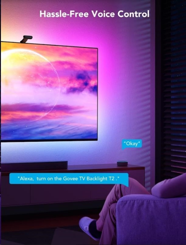 Vytvořte si ideální filmovou nebo herní atmosféru pomocí jednoduchých hlasových příkazů. Světla jsou kompatibilní s asistenty Alexa, Google Assistant a Siri. WiFi modul je zabudován v kameře, pouze kamera je připojena k ovládacímu boxu. Nyní můžete Govee DreamView zapnout/vypnout, upravit úrovně jasu nebo změnit jejich barvu pomocí hlasových příkazů z pohodlí své pohovky nebo postele. Ovládat světla je možné také přes ovládací jednotku Control Box nebo přes aplikaci ve smartphonu nebo tabletu.