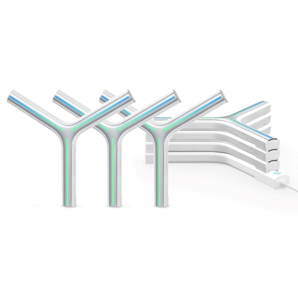 Zcela nové možnosti osvětlení přináší Govee Y Lights, spojení moderní skulptury a funkčního chytrého osvětlení. DIY stavebnice se sedmi moduly vám umožní realizovat naprosto originální a skvěle vypadající nástěnné světlo, které je super snadné na instalaci, chytré a nadité funkcemi. Ve zhasnutém stavu se můžete kochat moderními metalickými tvary a při rozsvícení budete ohromeni škálou 16,8 milionů odstínů, kdy světlo svítí jak do prostoru, tak na zeď za sebou. Jak je u Govee zvykem, světlo má přednastavených 8 hudebních režimů, takže hudbu přenese do vizuální podoby a dá vašim večírkům zcela nový rozměr. 40 přednastavených světelných scénářů je připraveno pokrýt jakoukoliv událost, roční období nebo aktivitu a kdyby to bylo málo, je tu intuitivní DIY režim, ve kterém si můžete nakonfigurovat scénu přesně podle představ. Govee Y Lights jsou ovládána aplikací Govee Home a samozřejmě podporují integraci do Google Home pro iOS a Android a hlasové ovládání asistenty Siri, Google a Alexa. Každý ze sedmi segmentů obsahuje 36 diod, což je dohromady 252 RGBIC světelných zdrojů. Napájení je řešeno 36 V adaptérem s délkou kabelu 1,5 m. Instalace se provádí lepením pomocí silných 3M lepících pásků – světla se k sobě spojují konektorem a je jen na vás jaký tvar si navrhnete.