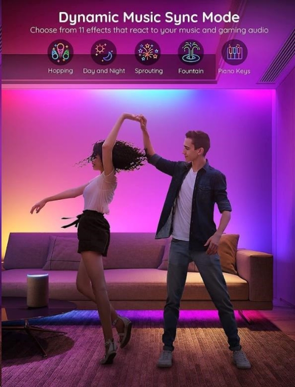 Světla mají integrovaný mikrofon, díky kterému se světlo umí synchronizovat s hudbou a rytmikou a vytvoří tak neopakovatelnou atmosféru na večírku, oslavě, při sledování filmu nebo během relaxace s poslechem oblíbené hudby.