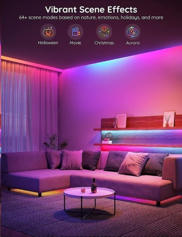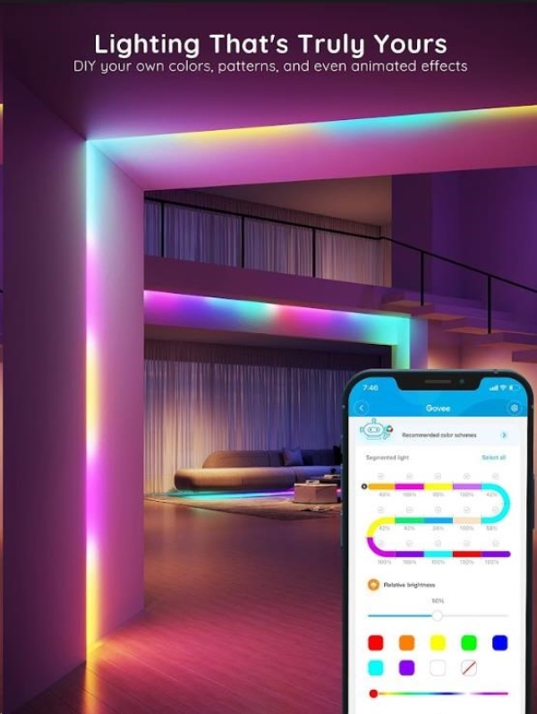Úsporné interiérové chytré LED pásky Govee WiFi RGBIC PRO SMART 5m s životností až 50.000 hodin udělají z vašeho domu designový skvost. Můžete je použít prakticky všude - obývací pokoj, ložnice, kuchyň, pracovna atd. Zobrazuje až 16 milionů barev, jejichž intenzitu lze nastavit od 1-100 % a díky technologii RGBIC si můžete rozdělit pásek na samostatné segmenty, pro které si pak můžete volit rozdílné barvy. Vyberte si ze 64 režimů osvětlení a při poslouchaní oblíbené hudby se budou světla synchronizovat díky vestavěnému mikrofonu a vytvoří nezapomenutelný zážitek. Nebo si prostě nastavte svoje vlastní barevné kombinace v režimu DIY. Příkazy můžete zadat také hlasem přes Siri, Amazon Alexa nebo Google Assistant, přes aplikaci Govee Home na chytrém telefonu nebo tabletu nebo přes Control box. Světlo má délku 5 metrů a jeho instalace je velice jednoduchá. Pomocí časovače můžete světla zapínat a vypínat automaticky podle západu a východu slunce, nebo usínání a vstávaní.