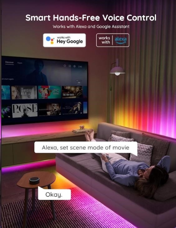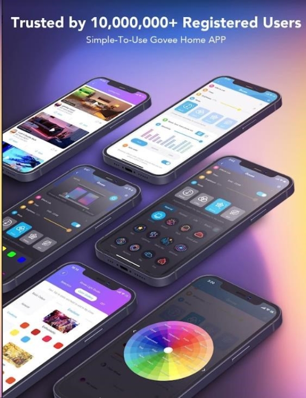 Spravujte nastavení barev a intenzity světla jednoduše pomocí aplikace Govee Home. Aplikace je zdarma ke stažení v Google Play a AppStore. Navíc získáte přístup k funkci časovače, DIY barvám, režimu videa, synchronizaci hudby a režimům scény. Rovněž si můžete pomocí časovače nastavit automatické vypnutí a zapnutí, třeba podle doby usínání a vstávaní. Ovládání hlasem je možné přes Siri, Amazon Alexa a Google Assistant.