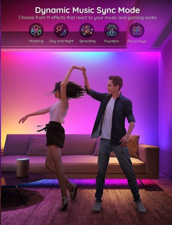 Světla mají integrovaný mikrofon, díky kterému se světlo umí synchronizovat s hudbou a rytmikou a vytvoří tak neopakovatelnou atmosféru na večírku, oslavě, při sledování filmu nebo během relaxace s poslechem oblíbené hudby.