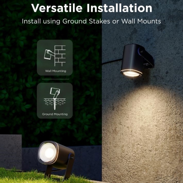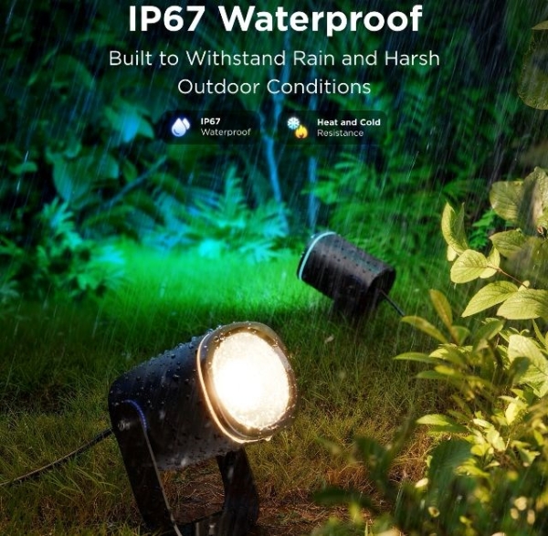 Úsporné zahradní reflektory se světelným výkonem 750 lm udělají z vaší zahrady designový skvost. Díky technologii RGBICWW umí zobrazit až 16 milionů barev a navíc nabídnou spektrum bílé od 2700 do 6500 K. Určitě si vyberete z více než 50 režimů osvětlení a při poslouchaní oblíbené hudby si můžete zvolit také ze 6 rytmických režimů. Nebo si prostě nastavte svoje vlastní barevné kombinace podle libosti na každém. Příkazy můžete zadat také hlasem přes Siri, Amazon Alexa nebo Google Assistant nebo přes aplikaci Govee Home na chytrém telefonu nebo tabletu. Nově světla podporují Matter, takže nativně podporují i Apple Homekit. Světlo má celkovou délku skoro 16 metrů a jeho instalace je velice jednouchá. Pomocí časovače můžete světla zapínat a vypínat automaticky podle západu a východu slunce. Světla mají index ochrany proti vodě IP67 (kromě zdrojového adaptéru) s provozní teplotou od -20°C do 40°C.