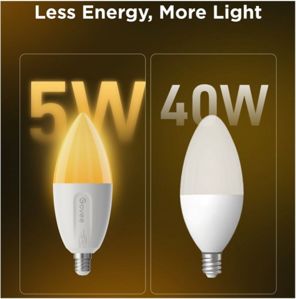 Chytré žárovky E14 Govee B600C jsou tu pro dokonalé moderní osvětlení vašeho domova. Jejich svítivost je 400 lumenů při příkonu 4,8 W. Žárovky používají technologii RGBWW, tedy 16 mil. barev a k tomu různé teploty bílé. Žárovku lze tedy používat jako dekorativní osvětlení, ale také jako hlavní zdroj bílého světla s rozmezím teploty 2700-6500 K s indexem podání barev 80 Ra a stmívatelností v rozmezí 1-100 %. To stačí na pokrytí celého dne a všech druhů aktivit jako je práce, relaxace nebo usínání a probouzení. Žárovky se díky energetické a tepelné šetrnosti nepřehřívají a vydrží tak svítit mnoho let. Ovládání je možné aplikací Govee Home, Google Home a hlasem pomocí asistentů Google, Alexa i Siri. Navíc jsou kompatibilní s Matter. Několik žárovek je možné seskupit pro pohodlnější ovládání. Aplikace nabídne mnoho přednastavených scén, které se hodí pro každou příležitost a díky mikrofonu umí žárovky i vizualizovat hudbu. Žárovky se připojují přes Bluetooth pro rychlé lokální ovládání, nebo Wi-Fi pro vzdálenou kontrolu. Díky ní můžete žárovky libovolně ovládat a časovat v případě, že nejste doma a předejít tak tomu, aby se vaše obydlí stalo cílem zlodějů.