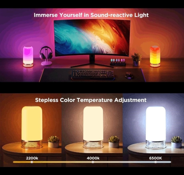 Zpříjemněte si svoji domácnost chytrou stolní lampičkou Govee Aura Smart, která zaujme na první pohled. Nabízí 16 milionů barev s 37 barevnými režimy a 4 režimy pro synchronizaci s hudbou. Světlo se ovládá hlasem přes Siri, Amazon Alexa nebo Google Assistant, přes aplikaci na chytrých telefonech a tabletech s operačními systémy iOS a Android nebo přes integrovaný ovladač. Lampička je vybavena úspornou LED žárovkou s technologii RGBIC, která umožňuje zobrazení více barev najednou a má dlouhou životnost 50.000 hodin.