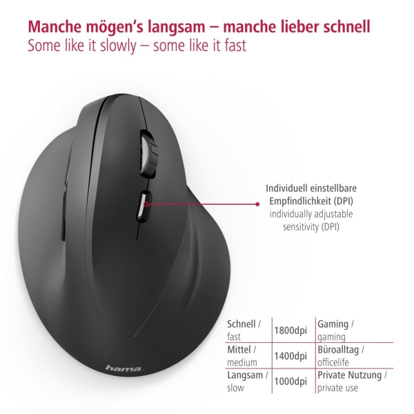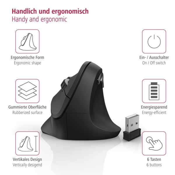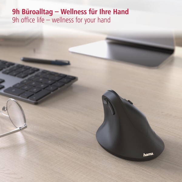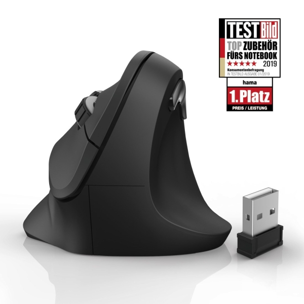 Hama vertikální ergonomická bezdrátová myš EMW-500, 6 tlačítek, černá