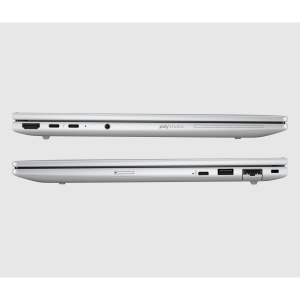 • USB-C s Thunderbolt, USB 3.2, WiFi 7, Bluetooth, HDMI, 5MP IR AI webkamera, cítacka odtlackov prstov, cítacka kariet Smart Card, podsvietená klávesnica, celokovové šasi, zvuk Poly Studio